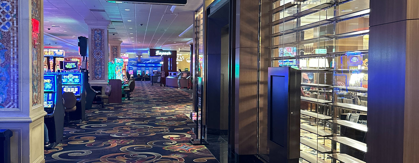 William B is a 7,000sf space with 13-foot ceilings that features a Bar and Lounge with wooden louvers and book-matched stone and mirror walls, a Main Dining Room with 20-foot long Murano glass chandelier, a floor to ceiling Glass Wine Case next to wood cladded columns with polished stainless steel trims separating the Main and Secondary Dining Rooms, a Private Dining Room perfect for meetings and special occasions, dedicated Restrooms, and remodeled Service Bar, Prep Area, & Kitchen.